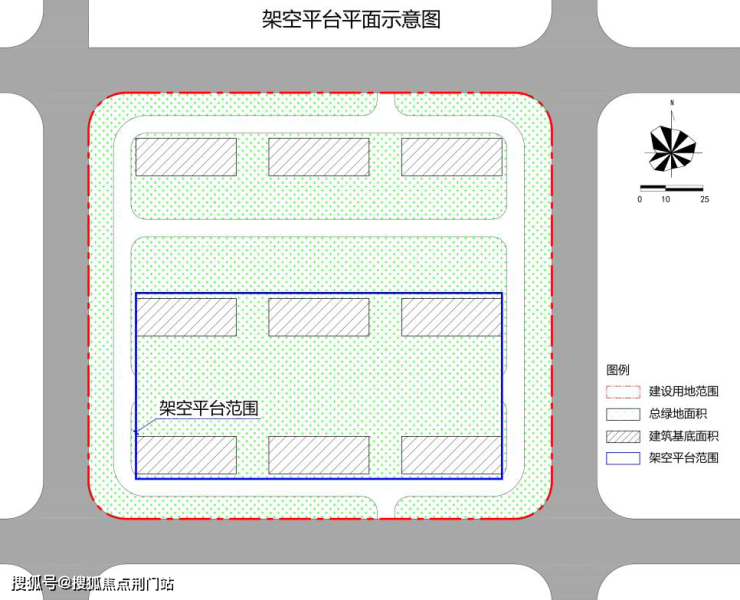 居住用地内位于底层架空平台下方的停车空间,结构层高应不大于4.5米,以平台(含覆土)面层作为室外地坪计算平台以上的建筑基底面积、绿地面积。