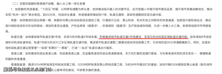 说所前的地铁规划铁板钉钉,还有一个证据。在去年9月绍兴发布综合交通运输发展「十四五」规划中,绍兴提出:绍兴2号线与杭州所前区域的轨道交通对接。