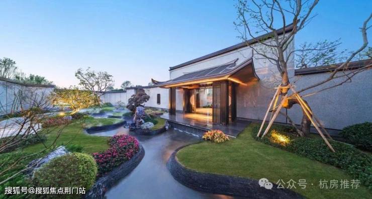 宽约46米、高约8米(含两侧景墙)的禅境新中式门头气宇轩昂。两侧对称布置照壁、石狮子和罗汉松,充满着东方大宅的威仪。