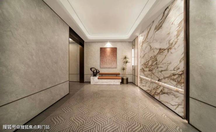 就连地下大堂顶部也有仿透光云石灯,这可是市中心豪宅才有的配置啊。