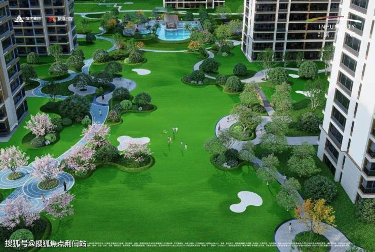 滨纷城的绿化面积高达约75000㎡,面积之大,甚至超过了一般的小区。在设计理念上,滨纷城借鉴了纽约中央公园的经典布局,精心构建了“一芯一环十境”的中央公园模式。