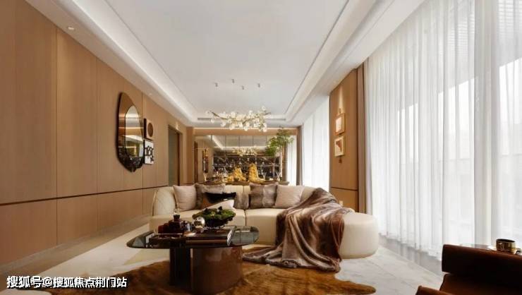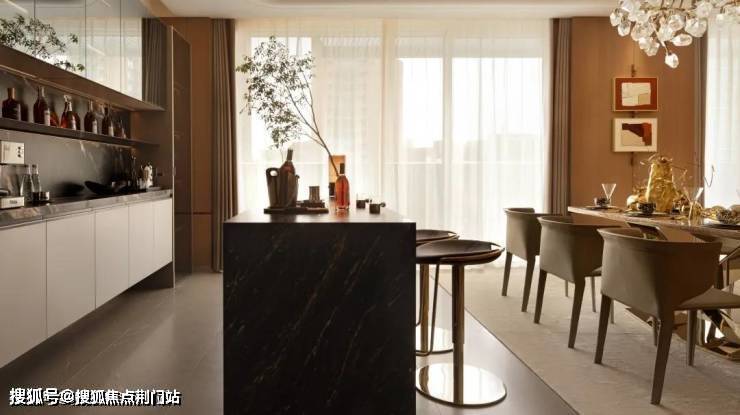 观山叠墅餐客大横厅设计,进一步强化公共空间的交互感与通透性。影音娱乐、游戏互动、社交会客、休闲观景……从“客厅”到“聚厅”的迭进,促进了家人间高频次交流,也强化了陪伴感。
