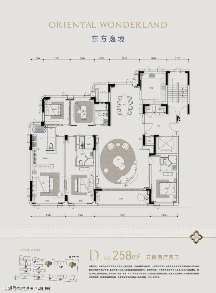 客厅、阳台尺度都非常阔绰,建面约258方户型超级客厅的面积达到近90方,中西餐厨一类的延展功能界面更优秀。