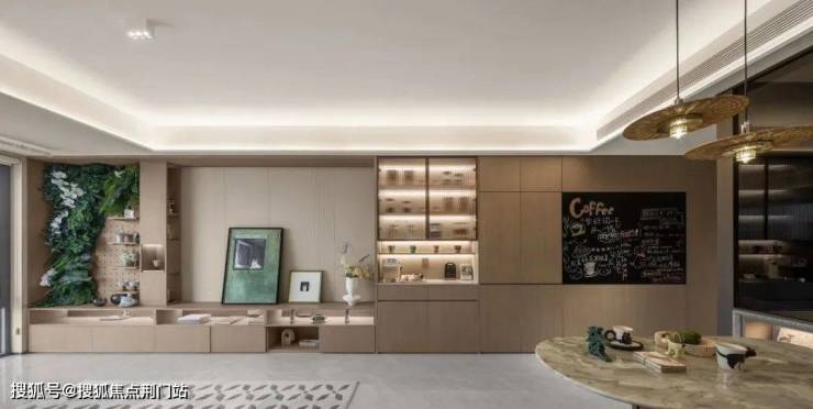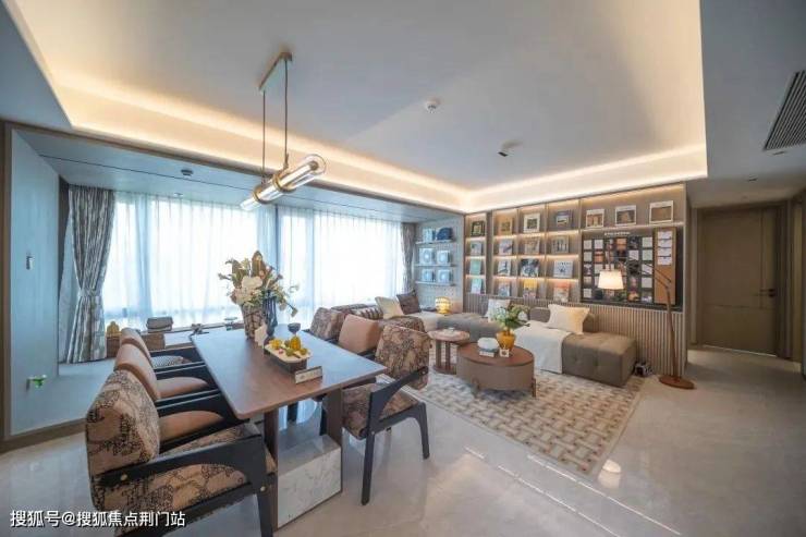 建面约103㎡的边套更是堪称神迹,将小户型的空间魔法玩到了极致。客厅到阳台的地面、天花直接拉通,甚至两侧的墙垛都已隐身,整个餐客厅面积达到约35㎡(含阳台),这可是140㎡以上大宅才有的空间感!