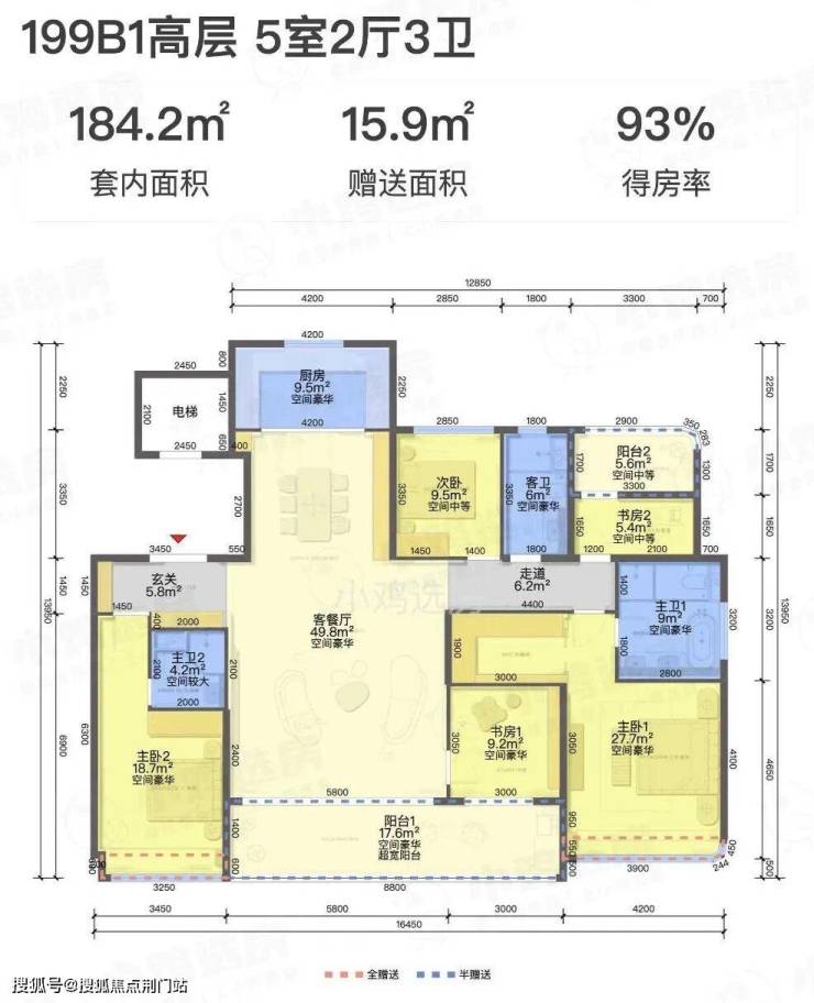 这一轮市场上的新房刚好处在卷得房率前夕,此前大多数高层楼盘套内实得率能达到88%都算优秀了,松川境199方户型的得房率高出一大截。