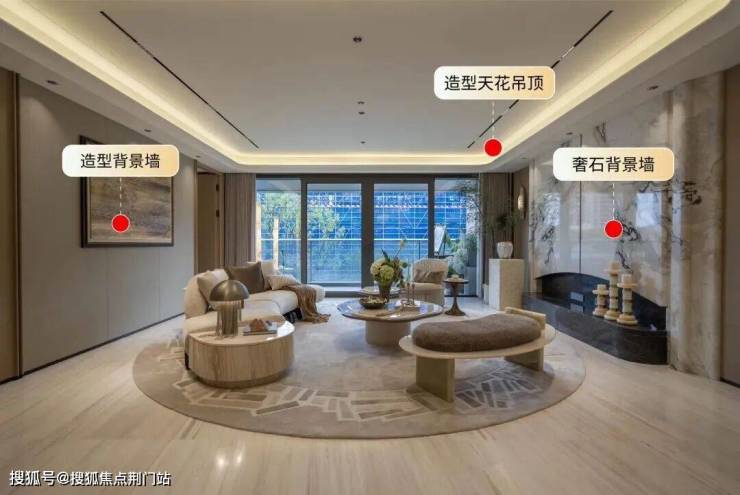 装修方面定制装甲门、奢石背景墙、大理石、造型背景墙、造型天花板等,整体含石量很高。甚至全屋wifi、电动窗帘机都装好了。