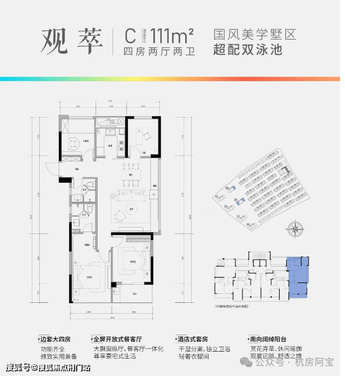 小区规划有 6 幢高层、35 幢联排,多方位打造生活主题,更有恒温泳池和露天泳池的双泳池设计