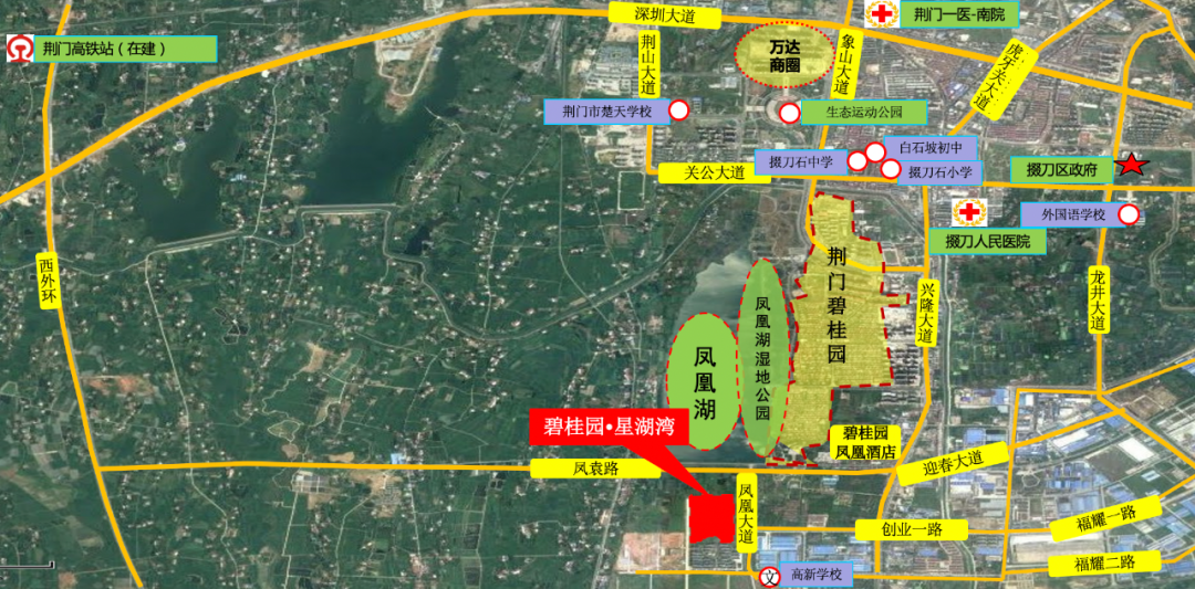 碧桂园新摘地块位于掇刀区凤凰大道以西、西侧规划为荆山大道延长线、南侧紧邻李宁·凤凰苑小区,距离高新学校500m,距离荆门一医南院5.3km,步行3分钟即可到达凤凰湖湿地公园;项目容积率2.5、计容建筑面积43.79万方(含保障房),总车位3620个。