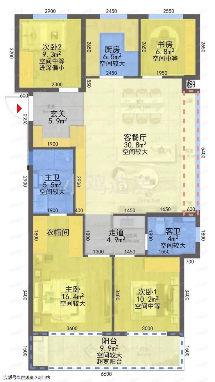 建筑面积约125方的经典大四房,自带约5.35米的 舒适大飘窗;约9.9㎡的双联观景大阳台,直接与花园对话;主卧空间豪华,约16.3㎡,还有超大的 步入式衣帽间,女主人的四季美衣再也不怕装不下了。改善群体以约300万的总价,就可轻松拥有。