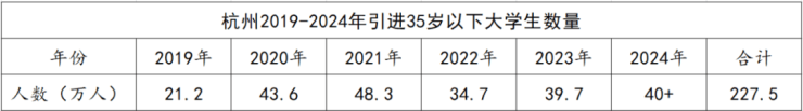 不完全统计,2019年以来,杭州新引进的35岁以下大学生数量逐年增加,六年累计引进数量超过了227万,占杭州总人口数量超过六分之一。