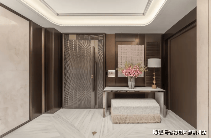 门庭正中,巍然矗立着一扇高约9.6米的巍峨铜门。其形制以钱塘潮汐为灵感铸就,气韵磅礴。此非凡巨制,由熔铜艺术宗师朱炳仁先生特别定制,令归家伊始,即成一场艺术巡礼。