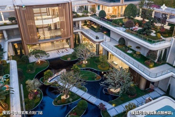 项目萃取精英生活底蕴,打造一座悬浮于都市之上的立体生态绿洲,「一轴·五境·七景」的叙事性布局,涵盖下沉庭院、叠瀑景观、花园水池、阳光草坪等沉浸式景观节点。