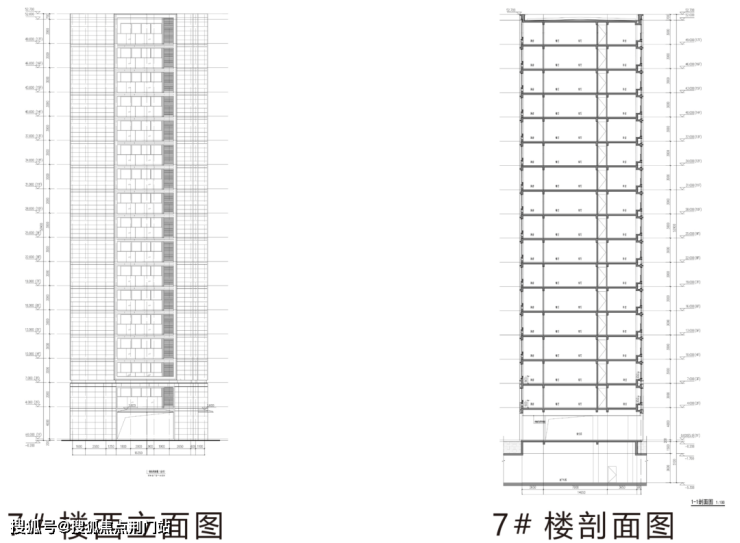 项目规划了12幢住宅,其中有8幢为14-17F高层,4幢为7F洋房。其中7F洋房位于北面一排,沿河排布,推测是为了更好的北面河道景观,但日照令人担忧,后文我们专门研究制作了日照模型。