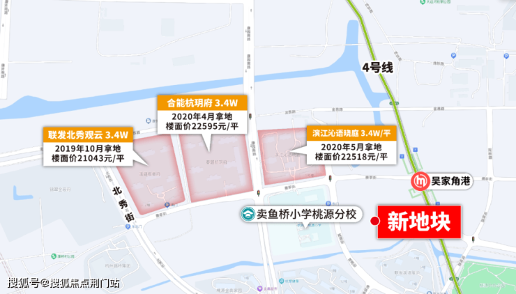它比桃源板块任何一个项目的位置都要好,地铁4号线吴家角港站、卖鱼桥小学0距离,限价3.4万/平!由建发底价拿下。