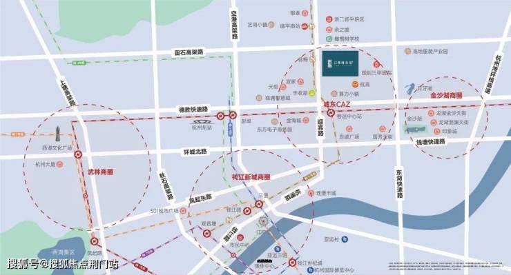 【东湖高架路】项目东侧约800米,向南衔接德胜、钱塘两条快速路,开车直达到市中心、钱江新城以及滨江奥体、萧山机场。