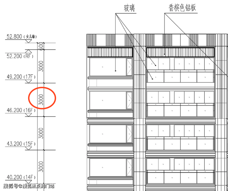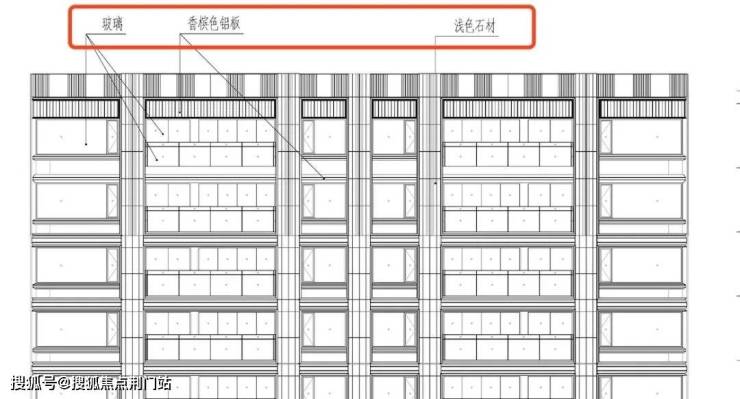 1、米色石材搭配香槟色铝板,和华润钱二6万+豪宅翡云润府有点像;