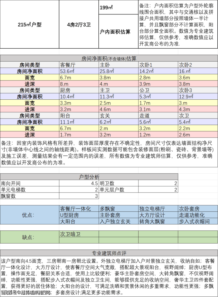 4、还有一款最大户型建面约215方4房2厅3卫: