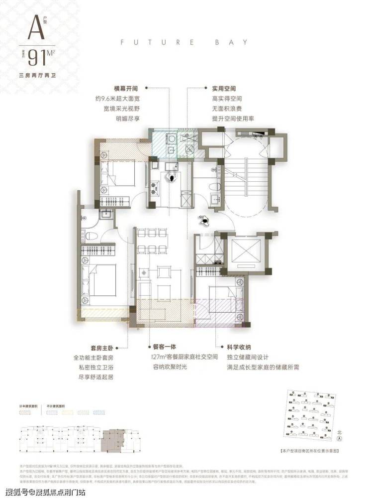 建面约91㎡三房两卫+独立储藏间,这不仅是“上车盘”,更是功能主义的杰作。