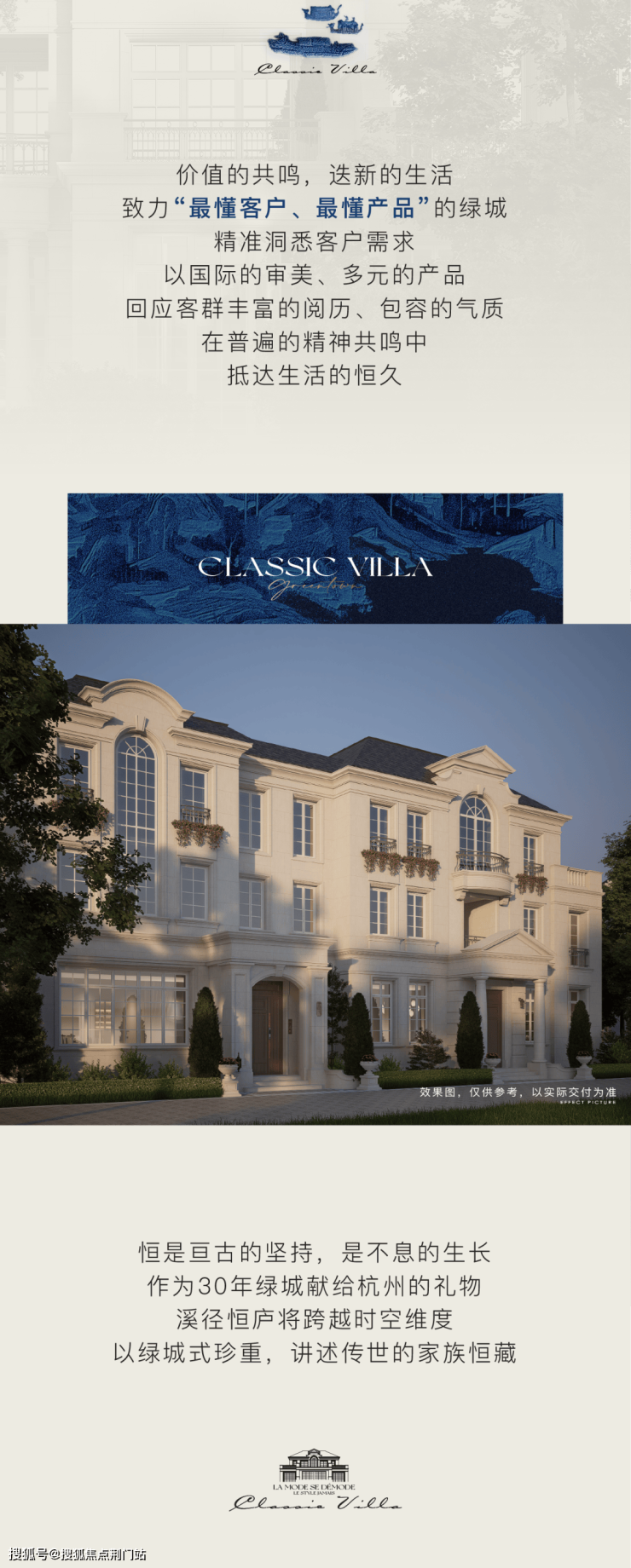 本文为要约邀请,不作为要约或承诺,本文提及的相关宣传内容不排除因政府相关规划、规定、出卖人分期规划及其他原因而发生变化,一切有关本项目及房屋的具体信息及买卖双方权利义务均以书面合同及政府最终审批文件为准。一切未列举事项或更改,不再另行通知,敬请留意最新资料。本项目推广名为【溪径恒庐】,核准地名为【溪径恒庐】,开发商【杭州绿城浙典置业有限公司】。本资料的发布时间为【2025】年【5】月,有效期【1】个月。绿城客服热线:95059。