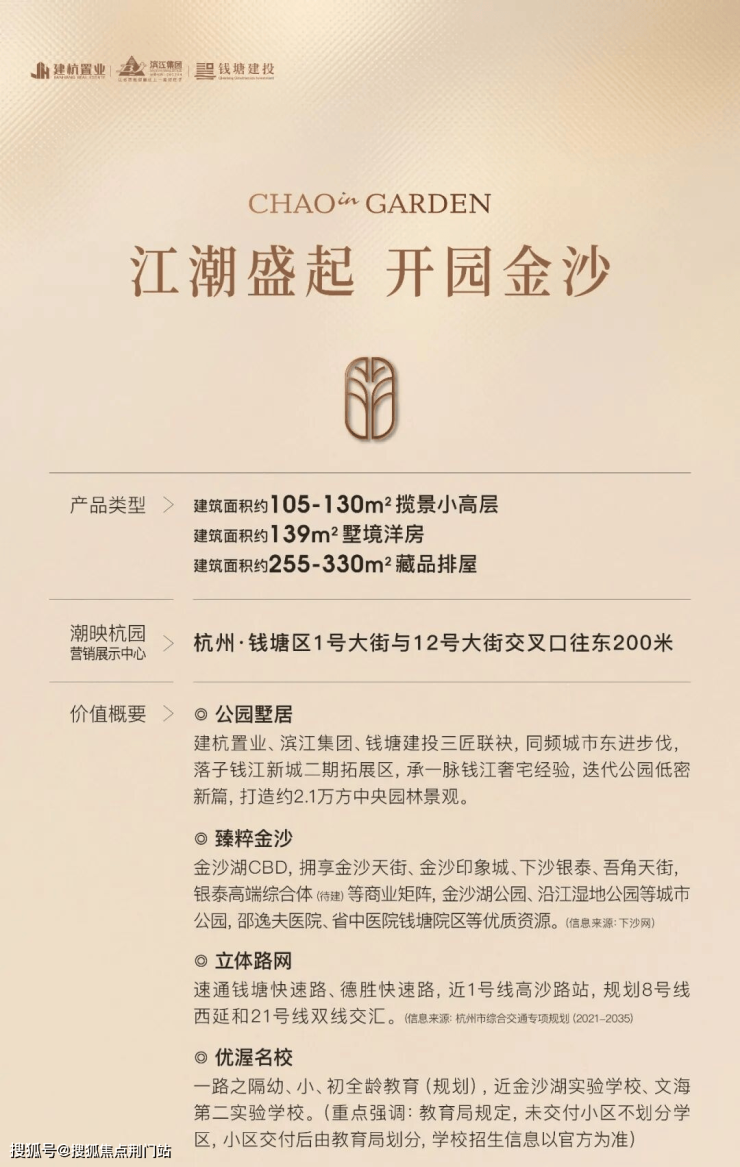 源自建杭置业、滨江集团、钱塘建投三大杭派巨匠的挚臻诚意,以引领之姿,恢弘造境。