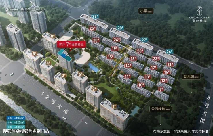 为最大化实现公园的栖居理想,潮映杭园依园排布揽景小高层、墅境洋房、都市排屋三重奢品。建筑面积约105-130㎡揽景小高层首发面市,以极致化的揽景采光面、超90%+高得房率,重新定义金沙湖改善尺度。