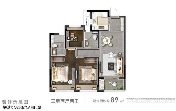 滨旭府一口气设计了5个户型,其中杭州几乎绝版的约89方三房两卫,三开间两房朝南的布局,麻雀虽小,功能俱全;