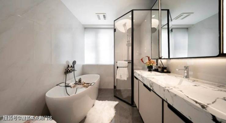一般的主卧卫生间,若要从容摆下大浴缸,起码需要180㎡起步。但望云庭建面约155㎡的尺度,同样预留出了浴缸的空间,未来可轻松实现「双浴」配置。