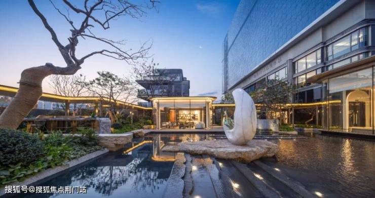 步入三进的入户大堂,直面园区中轴景观「临水观澜」: