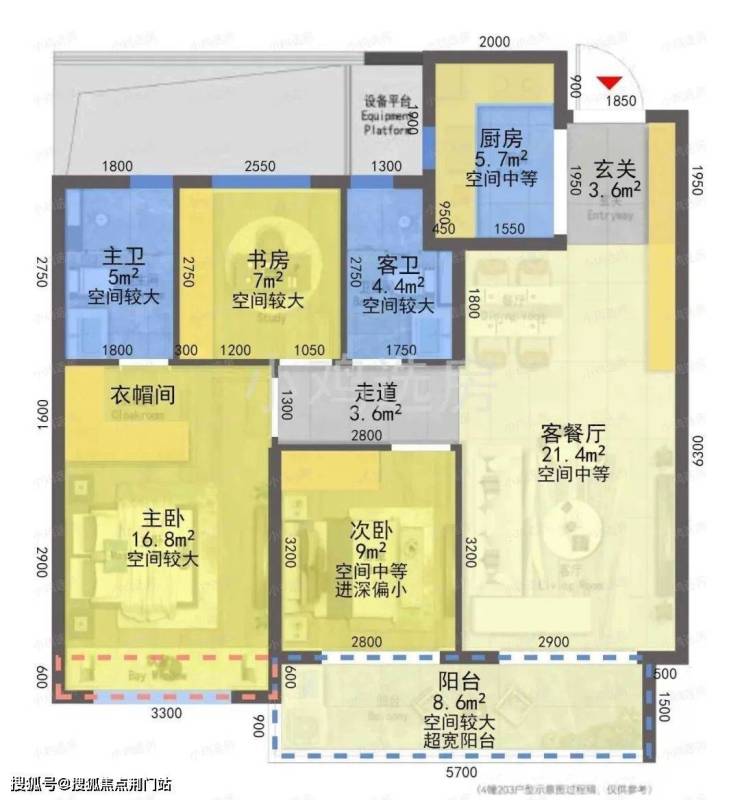 建筑面积约98方的中间套,拥有约9.5米的南向大开间,尺度感超强。开间约5.7米长的双联大阳台,无论是洗晒还是休闲使用,空间都绰绰有余;约5.7㎡的U型大厨房,还预留了个双开门冰箱的空间;全明卫设计,还特意做了干湿分离;另外,具备功能性极强的书房。这样一套刚需户型,业主所需的功能一应俱全。