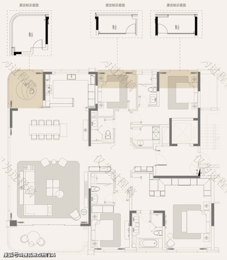 天澜传序府建筑面积约265方的户型,更是直接就做出了大平层,才有的尺度感——
