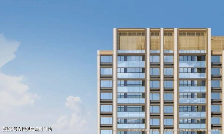 金色飘檐擦亮辨识度,南立面以大面玻璃主打,白、金、蓝灰为主调,配合部分涂料;基部用上了贝金米黄大理石,温润如月光。