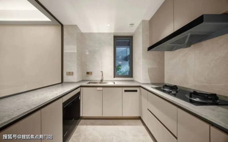 原本厨房的冰箱位,用玻璃墙作为隔断,既保持厨房台面的完整,形成U字动线,也可保持视线与光线的通透,一抬眼就看得到客厅。