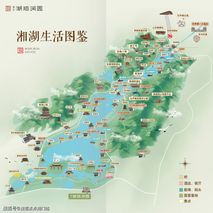 项目面向浩荡柔美的湘湖大景,项目依据地形肌理,由南至北打造「揽风」、「雅集」、「颂歌」,铺陈开一片美不胜收的“湖畔墅区新色”。