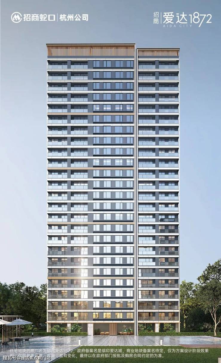 对刚需而言,有限的预算,爱达1872直接配了全套,自然不能错过。建筑外立面上,不同于传统的完全对称,而是以局部非对称的设计,让建筑看去更为灵动。外立面以灰白色调为主,使用了涂料、局部铝板、石材与玻璃的组合 。在建筑顶部,招商增设了香槟色的飘板设计,刷新区域立面的美学高度,极具辨识度。