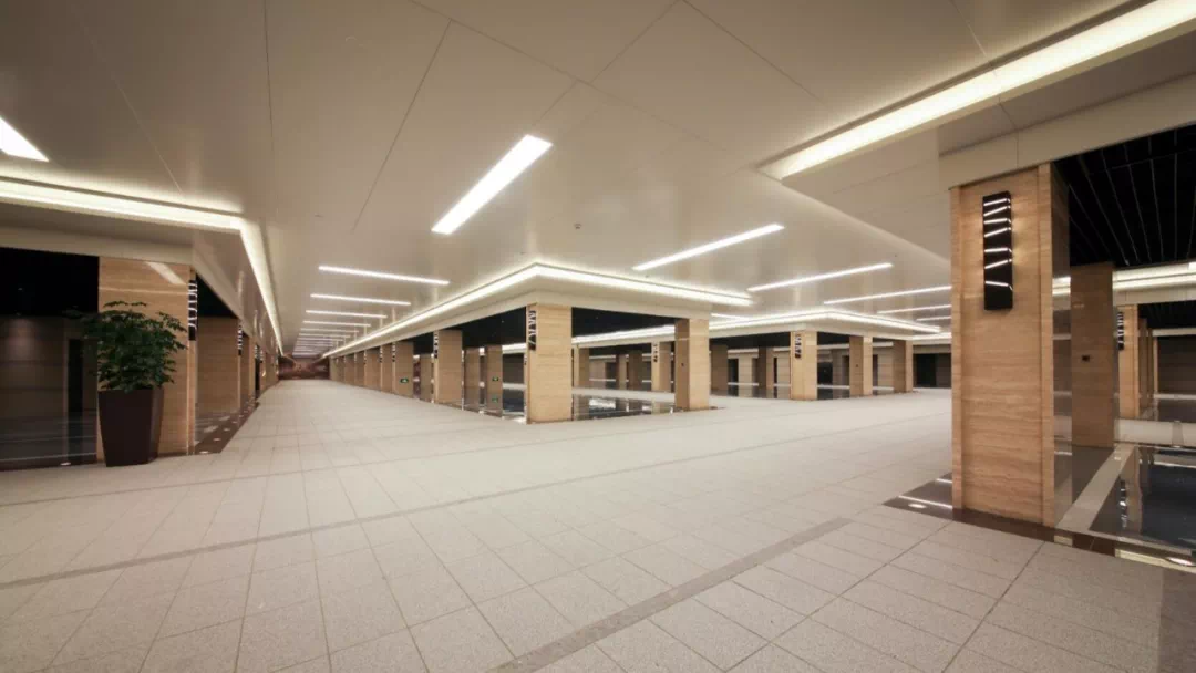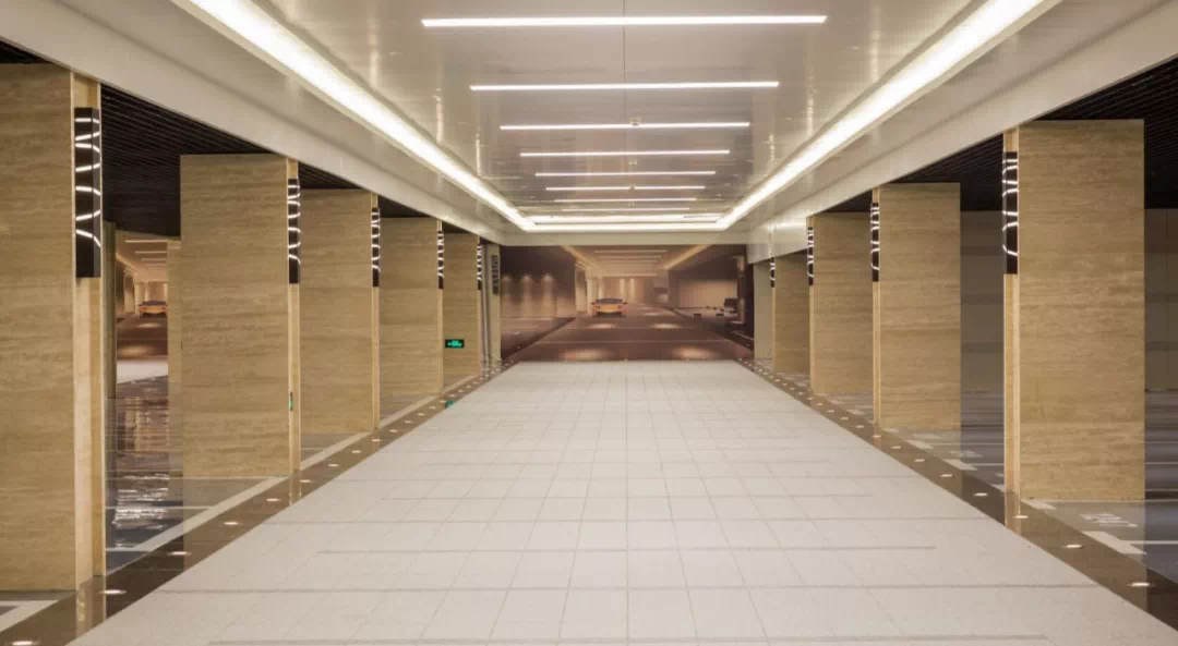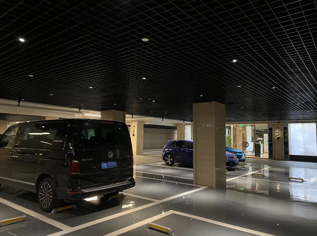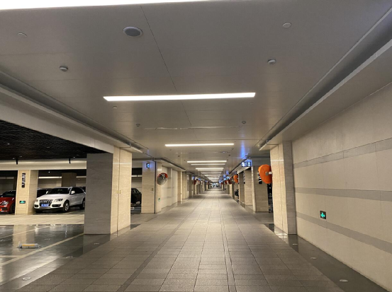 这个车库是有吊顶的,而且内部嵌入光源,保证整个地下车库是非常明亮