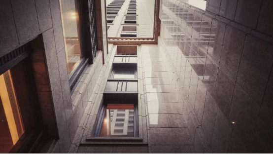 每个单元大堂旁边就会有两个这样的通风采光井