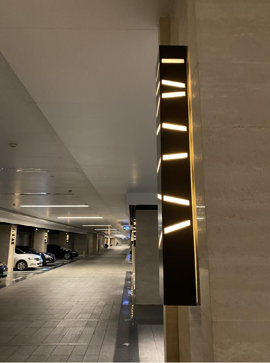 除了顶部的嵌入光源,停车场的立柱上,还做了这样精致的小灯,美观又温馨
