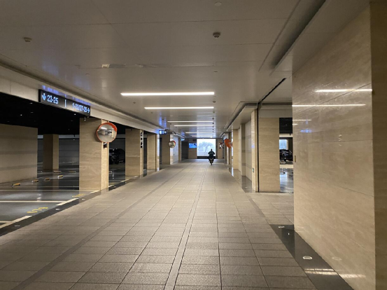 更难得的是,这样整体的品质感一直从车库大堂延伸到了停车场内部的每一个角落。