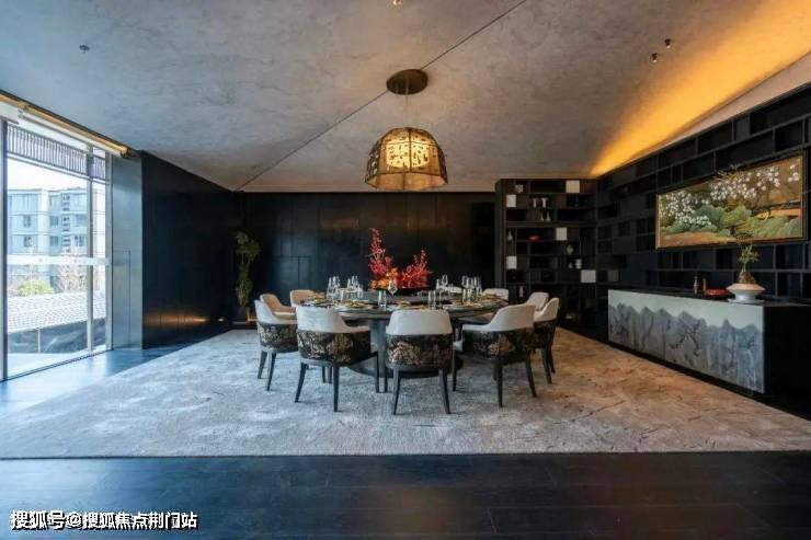 大门跨度达50米,本项目并未一味追求宏大规模,反而倾心于内敛的奢华风格。入口处墙面精心选用了亚马逊黑奢石,其色泽深沉而富有层次,纹理别具一格,彰显出一种沉静与尊贵的气质。