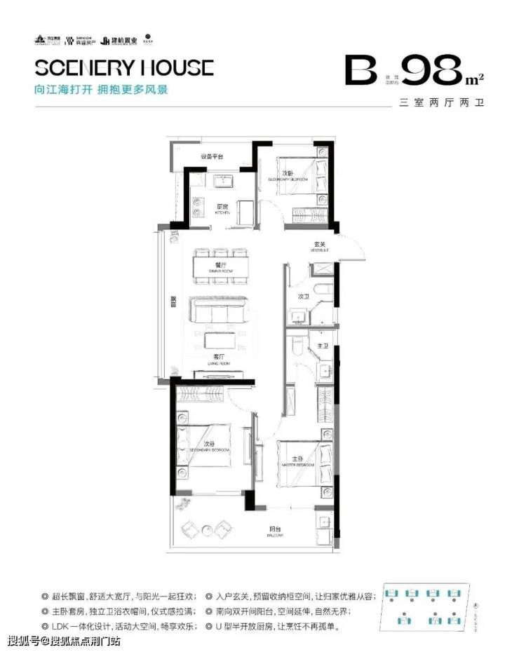 另一款主力建面约98方㎡边套户型也值得拥有。
