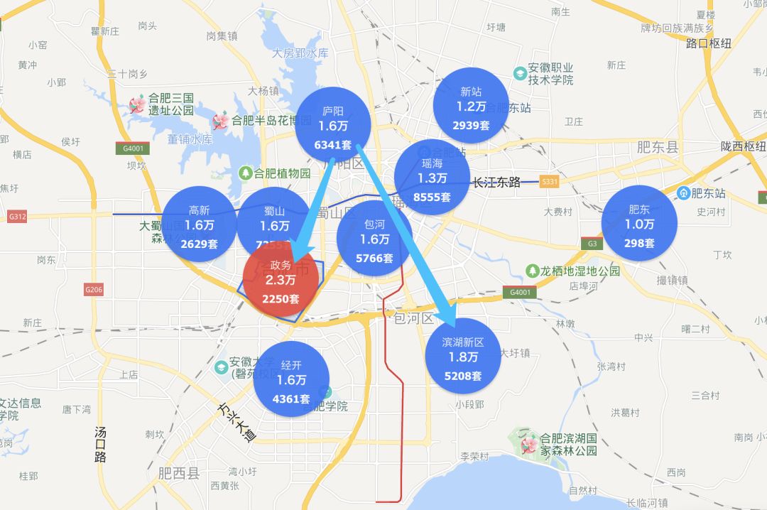 到现在来看,政务区的房价已经达到2.3万元/平米,而庐阳区老中心的房价仅有1.6万元/平米。就连之前荒凉的滨湖新区的房价也涨到了1.8万/平米。