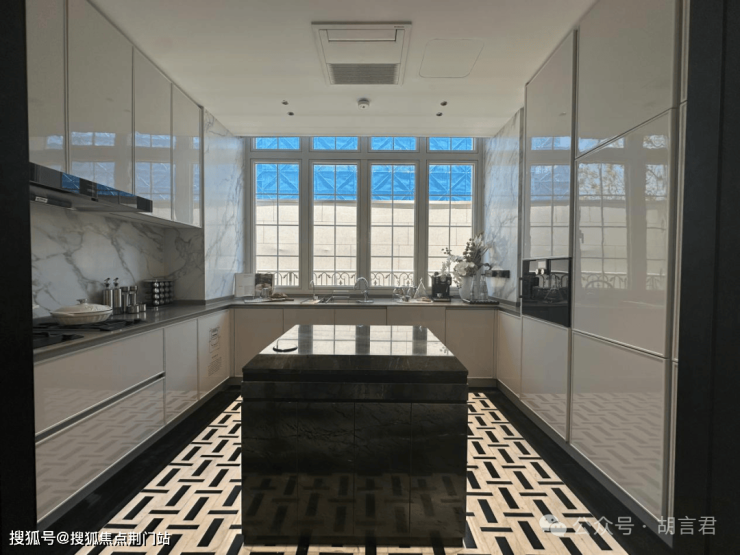 另一方面这个厨房做了传菜功能,菜通过下面厨房电梯传上来,在上面厨房再精处理,这样尽可能隔绝厨房的烟火气。