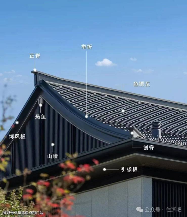 在建筑营造上,由gad张微老师执笔,延续和家园“章法天成,自然而然”理念,玺园·山前取法宋代郭熙的“三远论”,运用石材、玻璃、铝板等材质的巧妙搭配,结合正脊、戗脊、博风板、悬鱼、鱼鳞瓦等经典元素,呈现虚实相生、平远雅致的经典立面。