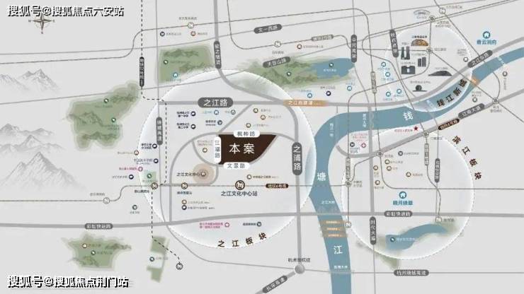 都心繁华生活圈 同频国际顶尖配套➢ 三高架 三路网 一轨交 链接多维立体交通项目周边立体交通覆盖,路网丰富,彩虹快速路、绕城高速、长深高速三大高架,紫之隧道、之江路、之江隧道(在建中)、之浦路快速路网,直线距离约600米地铁6号线之江文化中心站,便捷畅达杭州各大核心。