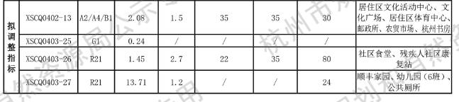 调整后:一宗含社区食堂、残疾人社区康复站的涉宅地块,容积率2.7,限高80米;