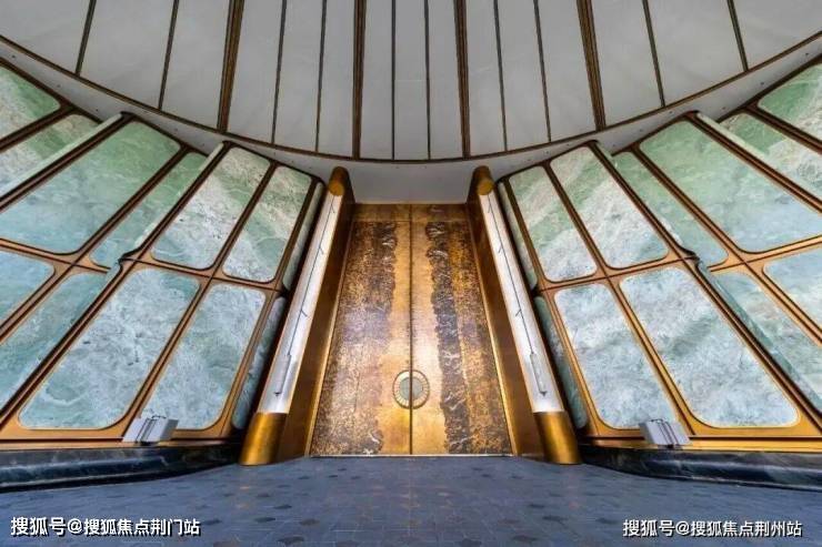 以杭州折扇为灵感而造的约56米超尺度门庭,形制舒展,寓意“藏风聚气”。12片巴西进口百达翡绿玉石屏风,温润围合。