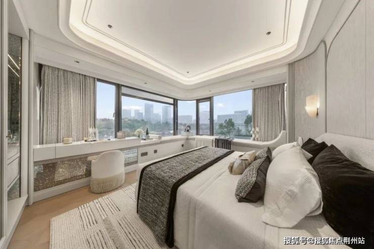 主卧270度转角飘窗,L型全景采光面,不仅将南向园林与北侧城市光影尽收眼底,更创造了一个沉浸式的观景休憩角落。与之匹配的L型衣帽间,实现了衣物、配饰与箱包的系统化收纳。同时还预留保姆家政间,客厅阳台封闭后仍保留多阳台&设备平台,兼顾观景与实用晾晒。
