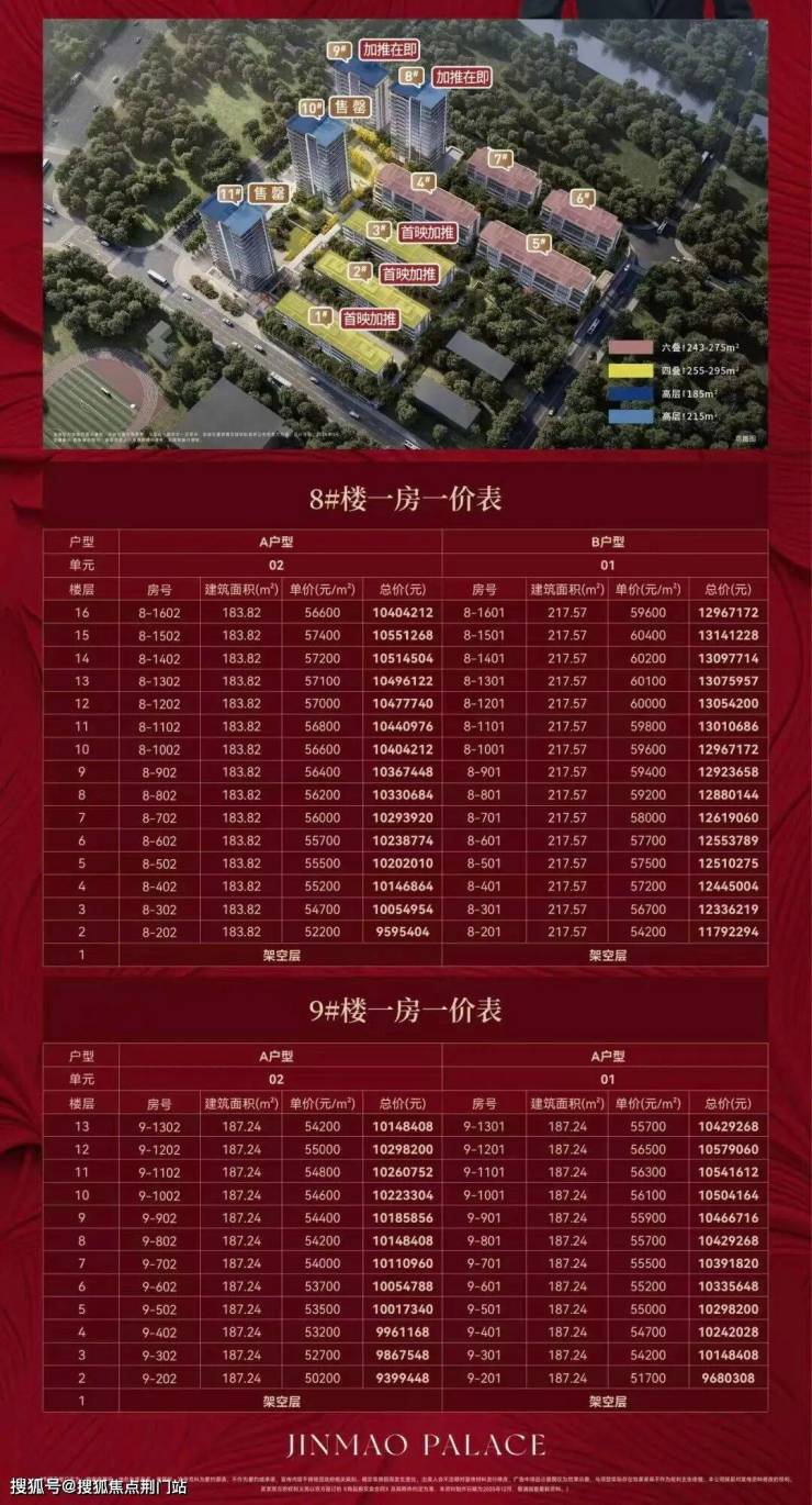 12月19日晚间,项目公示高层收官预售证,8#、9#共54套房源加推,面积185-216方,均价5.617万/平。