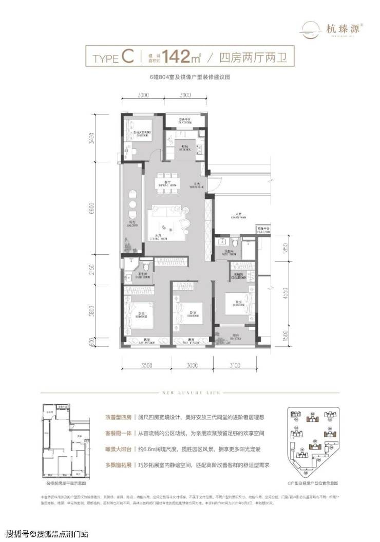 (建面约142方户型图示意)