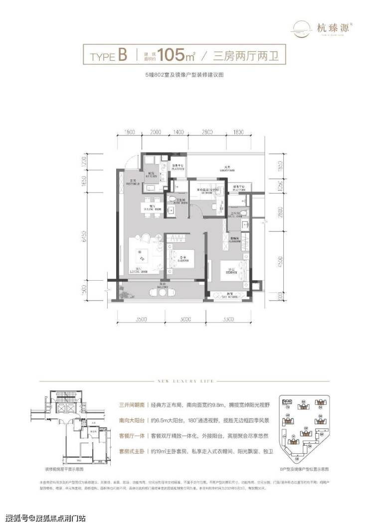(建面约105方户型图示意)